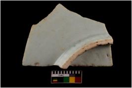 | Description / विवरण | Specimen of potsherd base portion of glazed ware; the surface is highly smooth and glossy. |