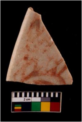 | Description / विवरण | Specimen of potsherd of glazed ware; the surface is highly smooth and glossy. It shows traces of ocre colour painting on the surface. |
