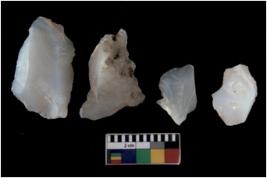 | Description / विवरण | There are n 4 flakes tool; there are multidirectional irregular scar pattern on them; made of short flakes and all four have tapering edges. |