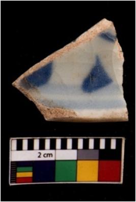 | Description / विवरण | Specimen of potsherd of glazed ware; the surface is highly smooth and glossy. It shows painting on blue on its surface. |