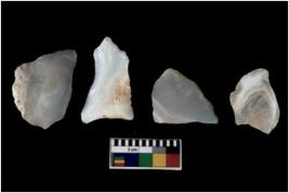 | Description / विवरण | There are n 4 flakes tool; there are large flakes with sides trimmed, Marks of secondary flaking are present on the both the faces. One is pointed functional top. |