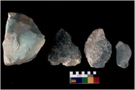 | Description / विवरण | There are n 4 flakes tool; there are large flakes with sides trimmed, Marks of secondary flaking are present on the both the faces.The dorsal is relatively flat. |