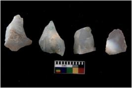 | Description / विवरण | There are n 4 flakes tool; there are flakes with sides trimmed, Marks of secondary flaking are present on the both the faces. |