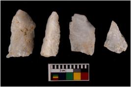 | Description / विवरण | There are n 4 flake cores. All of them are fully fluted flake cores without any trace of crested ridge flakes. Few are tapering at one end and some have sharp edges. |