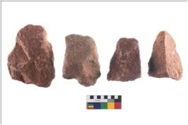 | Description / विवरण | There are n-4 of utilized cores. There are multidirectional irregular dominant scar pattern on both dorsal and ventral face of the cores. Some of them bulge of percussion and some are flat flake cores. |