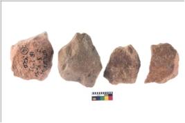 | Description / विवरण | There are n-4 of utilized cores. There are multidirectional irregular dominant scar pattern on both dorsal and ventral face of the cores. Some of them bulge of percussion and some are flat flake cores. |