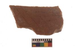 | Description / विवरण | Specimen of rectangular shaped graffiti on exterior of thin coarse Red ware potsherd. |