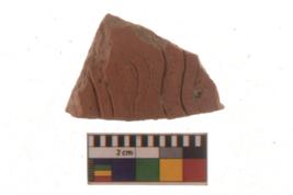 | Description / विवरण | Specimen of two line on interior of medium coarse Red ware potsherd. |