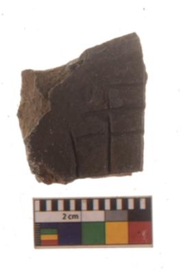 | Description / विवरण | Specimen of rectangular shaped graffiti on exterior of thin coarse Red ware potsherd. |
