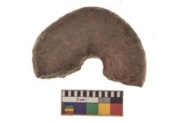 | Description / विवरण | Fragment of a circular, tabular, terracotta broken wheel. |