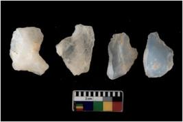 | Description / विवरण | There are n 4 flakes tool; there are large flakes with sides trimmed, Marks of secondary flaking are present on the both the faces. One is pointed functional top. |