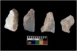 | Description / विवरण | There are n 4 flakes tool; there are multidirectional irregular scar pattern on them; made of short flakes and all four have tapering edges. |