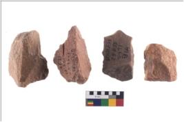 | Description / विवरण | There are n-4 of utilized cores. There are multidirectional irregular dominant scar pattern on both dorsal and ventral face of the cores. Some of them bulge of percussion and some are flat flake cores. |