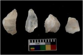 | Description / विवरण | There are n 4 flakes tool; there are large flakes with sides trimmed, Marks of secondary flaking are present on the both the faces. One is pointed functional top. |