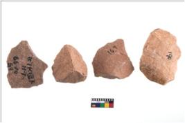 | Description / विवरण | There are n-4 of utilized cores. There are multidirectional irregular dominant scar pattern on both dorsal and ventral face of the cores. Some of them bulge of percussion and some are flat flake cores. |