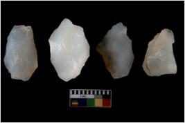 | Description / विवरण | There are n 4 flakes tool; there are flakes with sides trimmed, Marks of secondary flaking are present on the both the faces. |