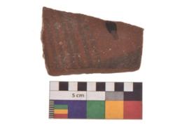| Description / विवरण | Specimen of Potsherd with black decorative horizantal liner painting |