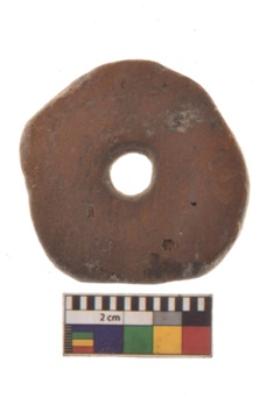 | Description / विवरण | Specimen of spindle whorls, it is circular in shape with a ground periphery and a perforation in the centre. |