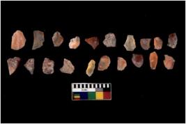 | Description / विवरण | There are n 20 flake chips; there are multidirectional irregular scar pattern on them; made of short flakes and few have tapering edges. |