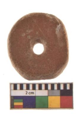 | Description / विवरण | Specimen of spindle whorls, it is circular in shape with a ground periphery and a perforation in the centre. |