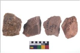 | Description / विवरण | There are n-4 of utilized flake cores. There are multidirectional irregular dominant scar pattern on both dorsal and ventral face of the cores. Some of them bulge of percussion and some are flat flake cores. |