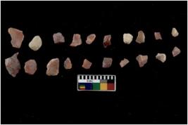 | Description / विवरण | Specimen of flakes Chips with prominent flaking marks. It made up of a short flakes with sides trimmed. |