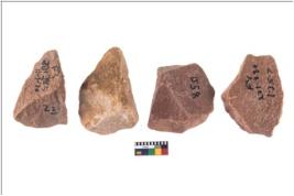 | Description / विवरण | There are n-4 of utilized flake cores. There are multidirectional irregular dominant scar pattern on both dorsal and ventral face of the cores. Some of them bulge of percussion and some are flat flake cores. |