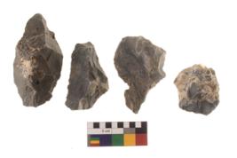 | Description / विवरण | There are n 4 cores; there are multidirectional irregular scar pattern on them. The reverse bulb and platform can be seen. |