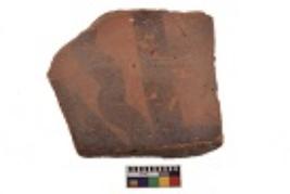 | Description / विवरण | Specimen of black on red ware with decorative geometric Two vertical lines and one is latticed band painting. |