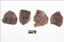 | Description / विवरण | There are n-4 of utilized flake cores. There are multidirectional irregular dominant scar pattern on both dorsal and ventral face of the cores. Some of them bulge of percussion and some are flat flake cores. |