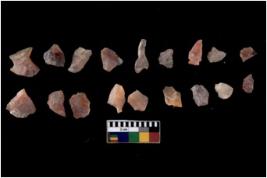 | Description / विवरण | Specimen of flakes Chips with prominent flaking marks. It made up of a short flakes with sides trimmed. |