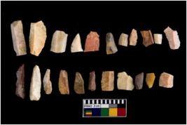 | Description / विवरण | There are n-22 of microliths, all of them are of chert. Some of them are partially broken. They show variation in colour, size and shape. Some of them are blunted back baldes, points, triangles, trapezes, crescent and truncated blades. |