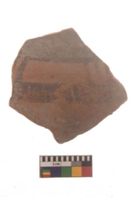 | Description / विवरण | Specimen of Potsherd black on red painted pottery. It is fine fabric in sharp contrast with painted design are executed in black pigment. |
