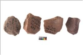 | Description / विवरण | There are n-4 of utilized flake cores. There are multidirectional irregular dominant scar pattern on both dorsal and ventral face of the cores. Some of them bulge of percussion and some are flat flake cores. |