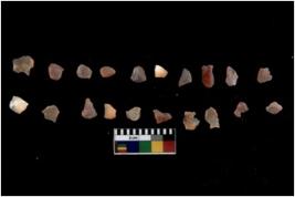 | Description / विवरण | Specimen of flakes Chips with prominent flaking marks. It made up of a short flakes with sides trimmed. |