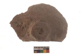| Description / विवरण | A partially broken specimen of terracotta wheel with broken edges and scratch marks on one side near perforation. |
