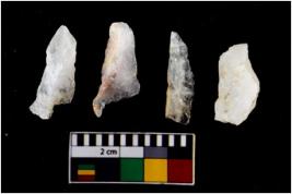 | Description / विवरण | There are n 4 flake cores. All of them are fully fluted flake cores without any trace of crested ridge flakes. Some are tapering at one end and few have sharp edges. |
