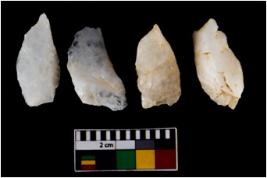 | Description / विवरण | There are n 4 flake cores. All of them are fully fluted flake cores without any trace of crested ridge flakes. Some have blunted edges and some have round edges. Few have flat base. |