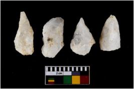 | Description / विवरण | There are n 4 flake cores. All of them are fully fluted flake cores without any trace of crested ridge flakes. Some are tapering at one end. Some have flat base and few have sharp edges. |