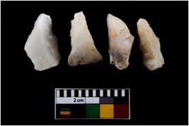 | Description / विवरण | There are n 4 flake cores. All of them are fully fluted flake cores without any trace of crested ridge flakes. Some are tapering at one end. Some have flat base and few have sharp edges. |