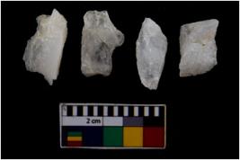 | Description / विवरण | There are n 4 flake cores. All of them are fully fluted flake cores without any trace of crested ridge flakes. Some are tapering at one end. Some have flat base and few have sharp edges. |