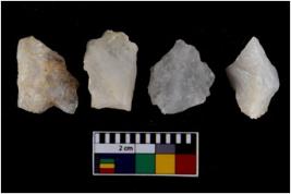 | Description / विवरण | There are n 4 flake cores. All of them are fully fluted flake cores without any trace of crested ridge flakes. Some are tapering at one end. Some have flat base and few have sharp edges. |
