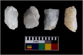 | Description / विवरण | There are n 4 flake cores. All of them are fully fluted flake cores without any trace of crested ridge flakes. Some are tapering at one end. Some have flat base and some have blunted edges. |