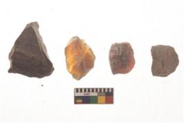 | Description / विवरण | There are n 4 flakes tool; there are multidirectional irregular scar pattern on them; made of short flakes and all four have tapering edges. |