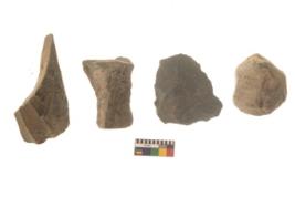 | Description / विवरण | There are n 4 flakes tool; there are large flakes with sides trimmed, Marks of secondary flaking are present on the both the faces.The dorsal is relatively flat. |