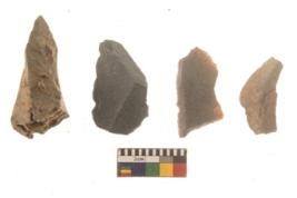 | Description / विवरण | There are n 4 flakes tool; there are large flakes with sides trimmed, Marks of secondary flaking are present on the both the faces. |