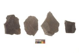 | Description / विवरण | There are n 4 flakes tool; there are multidirectional irregular scar pattern on them; made of short flakes and all four have tapering edges. |