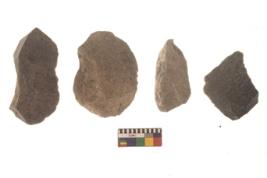 | Description / विवरण | There are n 4 flakes tool; there are large flakes with sides trimmed, Marks of secondary flaking are present on the both the faces.The dorsal is relatively flat. |