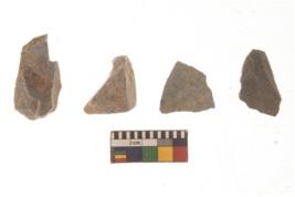 | Description / विवरण | There are n 4 flakes tool; there are multidirectional irregular scar pattern on them; made of short flakes and all four have tapering edges. |