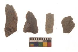 | Description / विवरण | There are n 4 flakes tool; there are large flakes with sides trimmed, Marks of secondary flaking are present on the both the faces.The dorsal is relatively flat. |